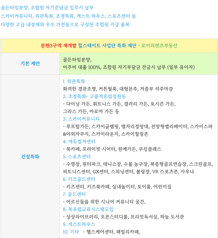 문현3구역 재개발 시공사 힐스테이트 사업단 특화 제안 내용 입니다.