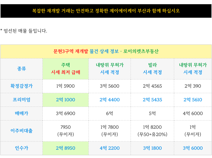 두번째가 주변시세 보다 낮아 실거주가에게도 좋고 투자자에게도 수익성이 확보되어 있는 점