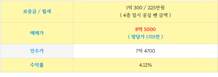 1) 매매가 8억 5000, 대지 커 평당가 1701로 최저 꼬마 건물