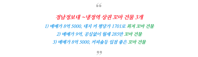오늘 냉정역, 경남정보대 메인 상권 위치한 꼬마 건물 빌딩 3개 매물 정보 정리 드립니다.
