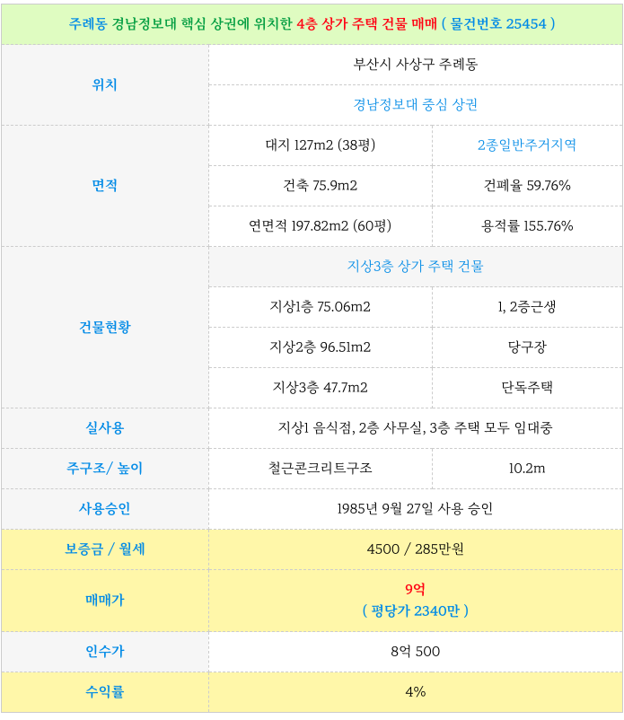 사상구 주례동 경남정보대 꼬마 상가 건물 빌딩 매물 소개 드리겠습니다.