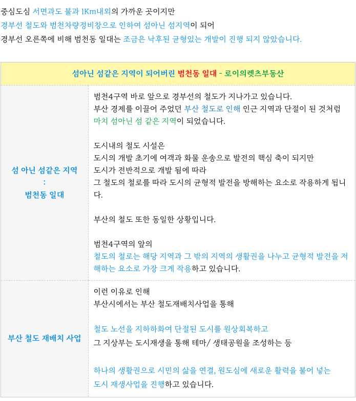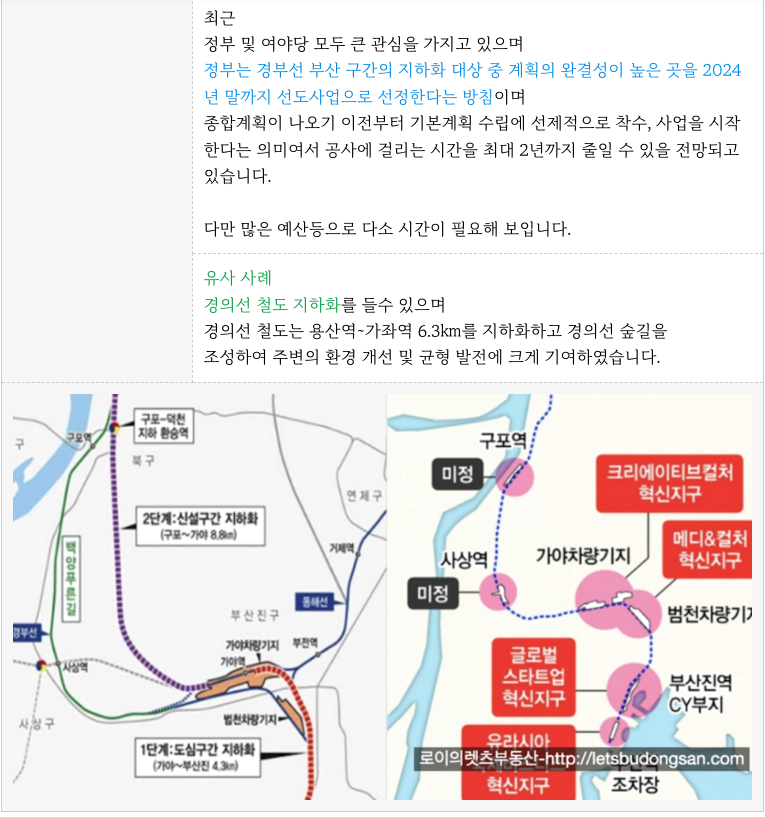 추가로, 경부선철로 지하화 역시 진행이 되면 더욱더 접근성 및 생활 환경이 크게 개선됩니다