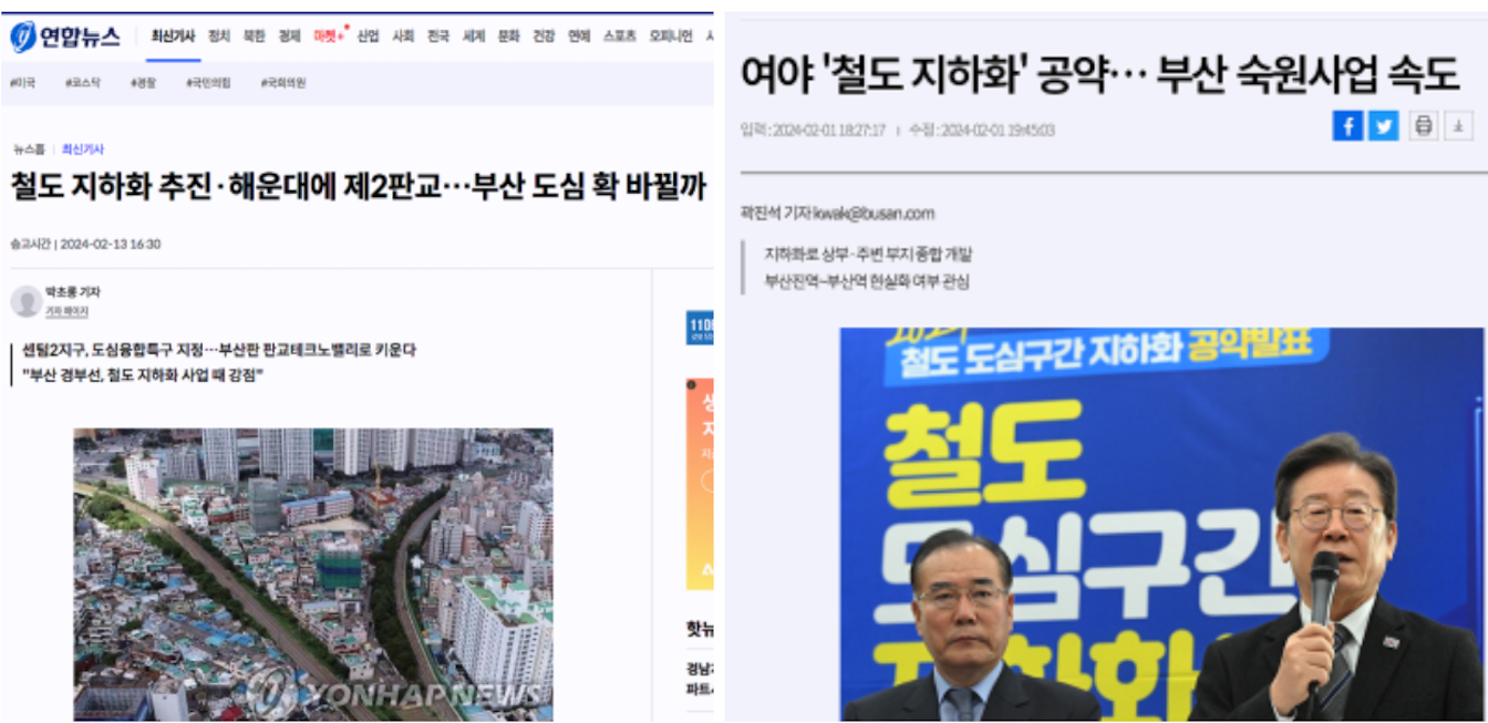 범천 차량정비창 이전과 부산 경부선 철도 지하화 사업으로