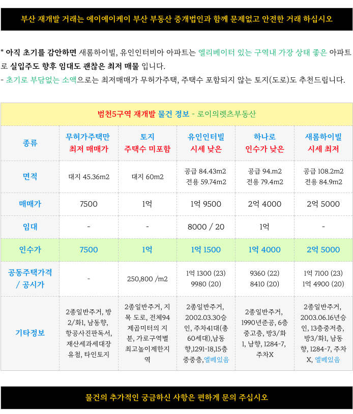 범천5구역 재개발 현재 최저 엄선 매물을 정리하였습니다.