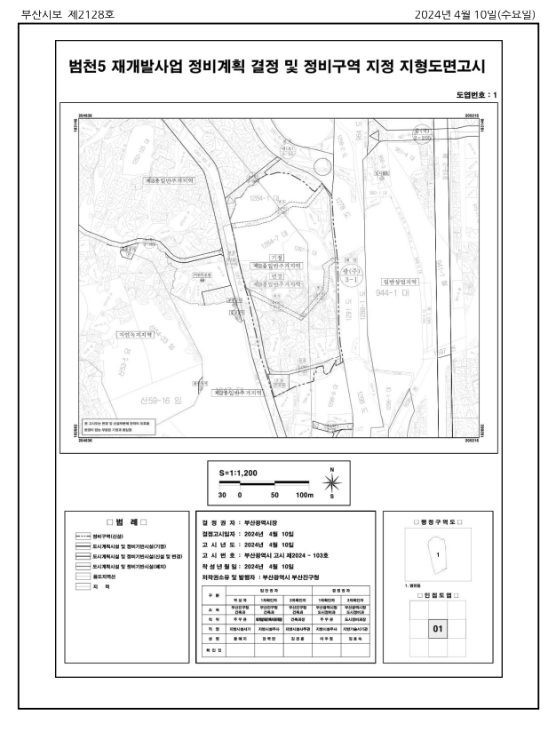 범천5구역은 4월 10일 정비구역 지정고시가 되었습니다.
