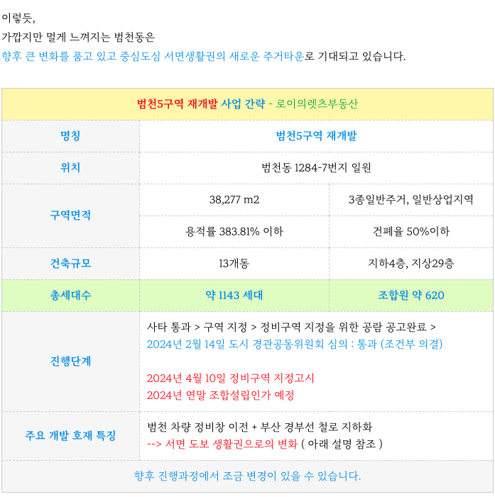 | 범일2구역 재개발 진행 & 매물 (84, 123타입 ) (1) | 2024.04.15 |