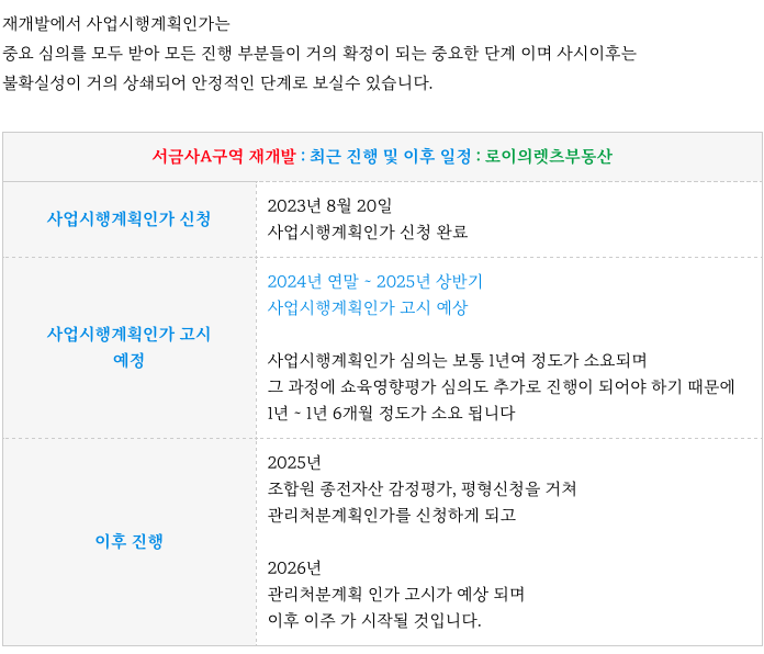 서금사A구역 재개발 최저 매물 정리 그리고 최근 진행 소식