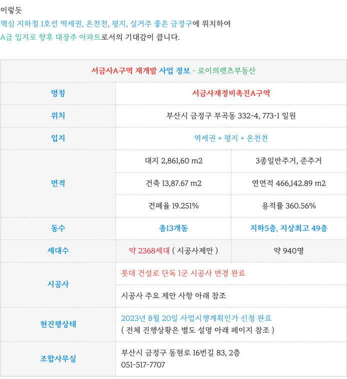 부산 전역 재개발에 대해 궁금하신 점은 편하게 방문 또는 연락 주시면 설명드리겠습니다.