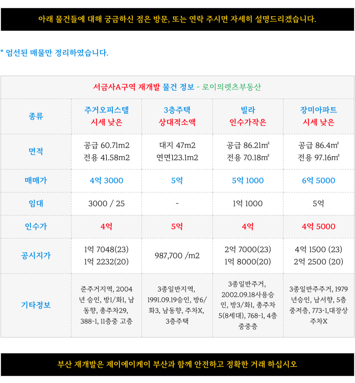 서금사A구역 재개발 현재 엄선된 매물 정보부터 먼저 소개해 드리겠습니다.