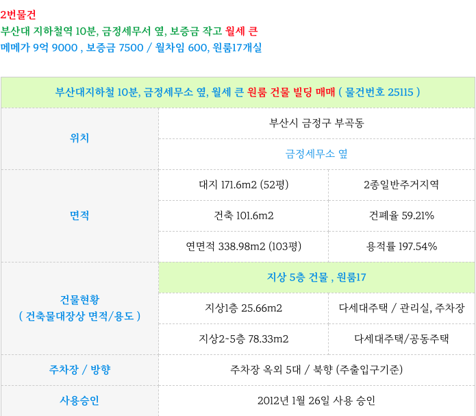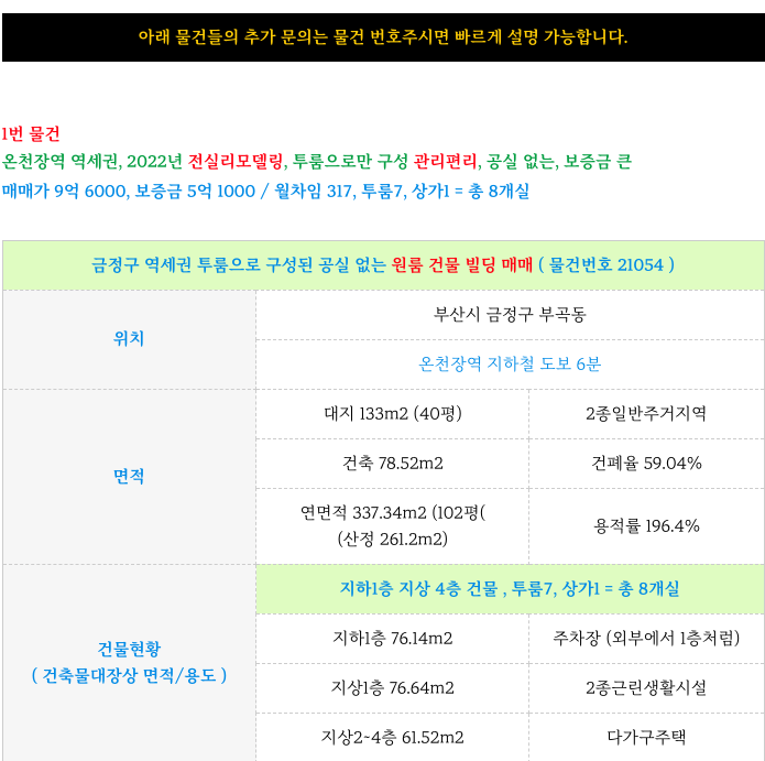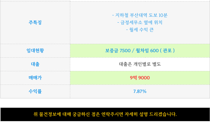 부산 경남 건물 토지 상가 주택 등 부동산 물건 투자 및 물건 접수 받습니다.