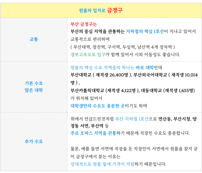 오늘 원룸 건물들 위치한 금정구를 한번 살펴 보겠습니다.