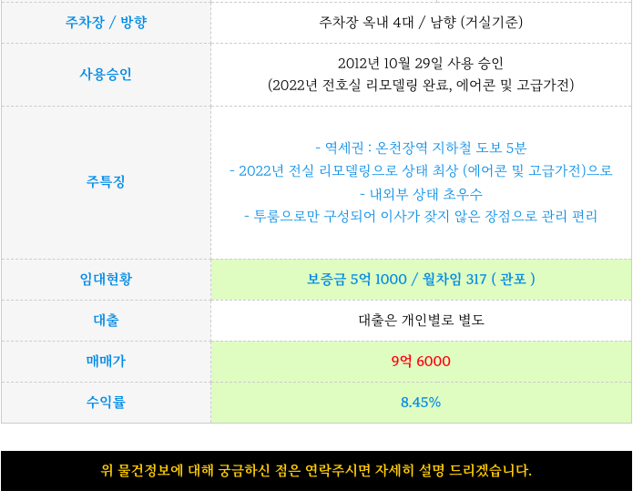 아래 각 물건의 상세 정보를 체크해 보시면 됩니다.