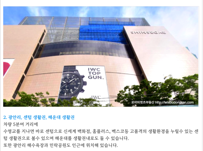 신세계 백화점, 롯데백화점, 롯데마트등 센텀 지구 상권 역시 가까기 있습니다.