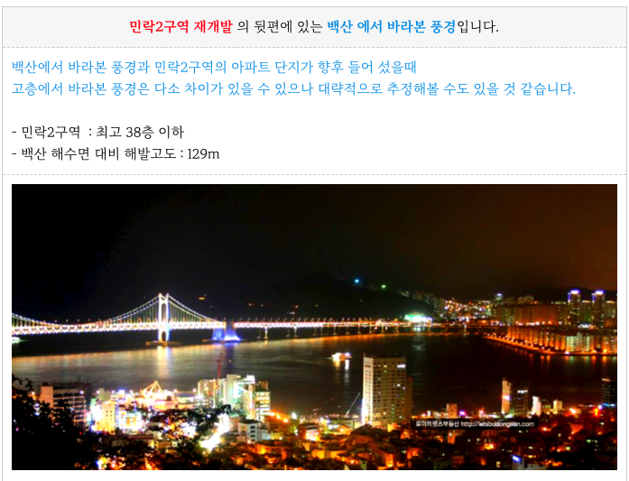 민락2구역 재개발 주요 진행 부분들 등 추가 정보는 아래 페이지를 참고 부탁드립니다.