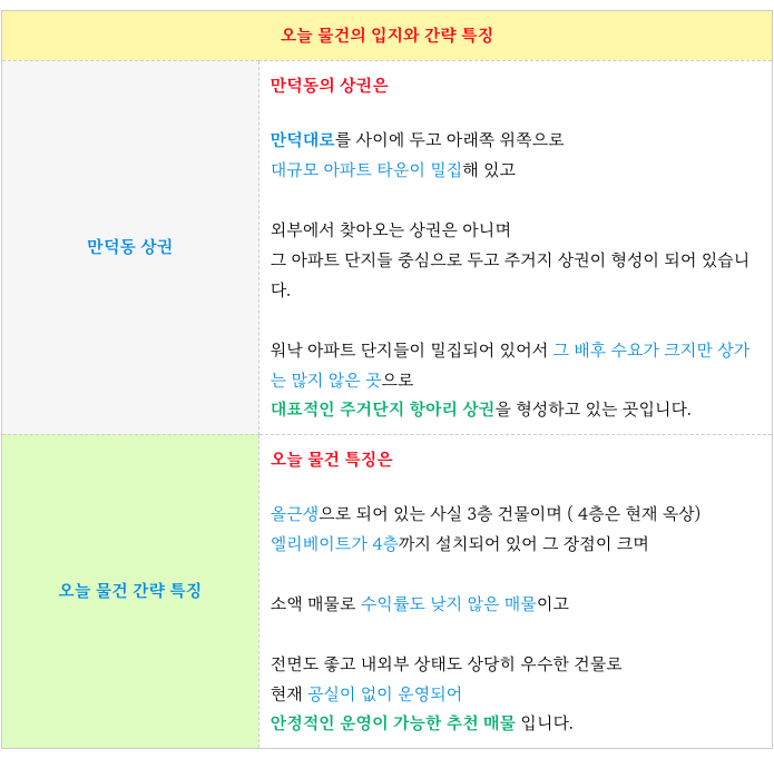 만덕역 역세권 대단지 아파트 앞 울근생 상가 건물 매물 정보 정리 드립니다.