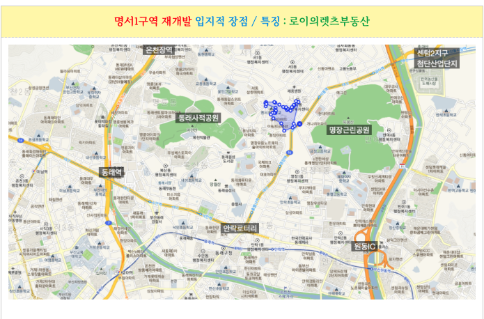 명서1구역 재개발 간략히 입지적 주요 특징을 정리하였습니다.
