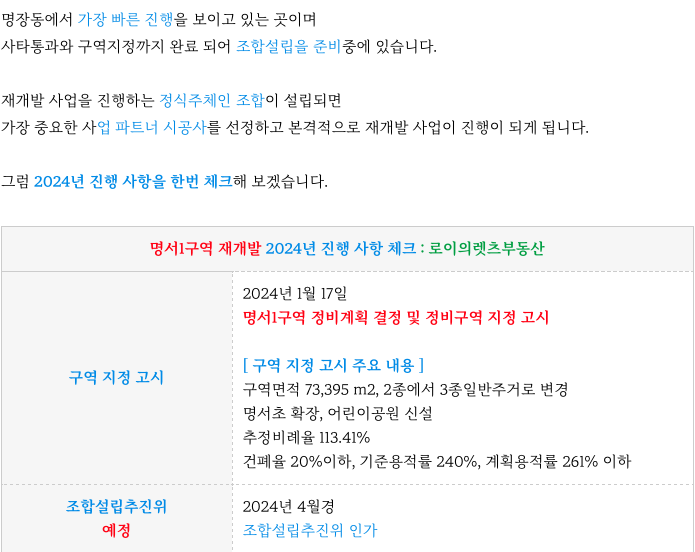 명서1구역 재개발 일자별 주요 진행 사항 정리등 추가 정보는 아래 페이지를 참고 바랍니다.
