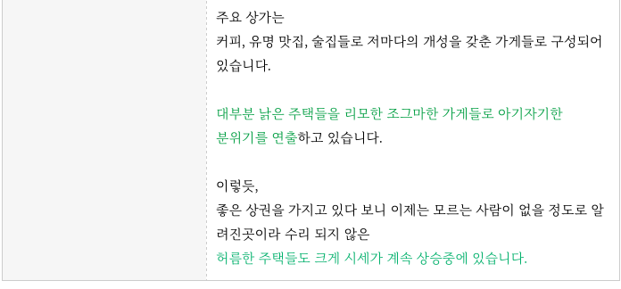 오늘 소개드리는 매물 4개의 간략한 특징을 정리 드리겠습니다.