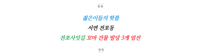안가본 젊은 친구들이 없을 정도로 핫핫한 서면 전포사잇길에 위치하고 있습니다.