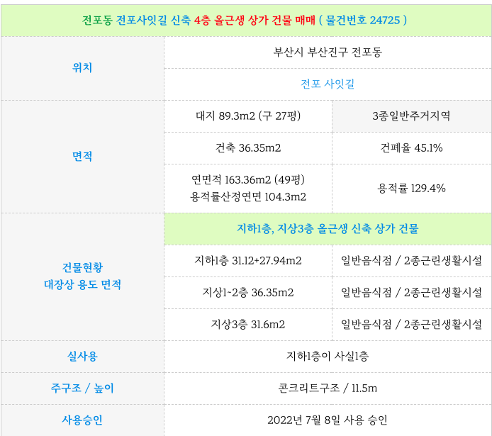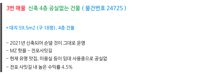 전포동 전포사잇길 신축 3층 올근생 상가 건물 매매 물건 정보 정리 드립니다.