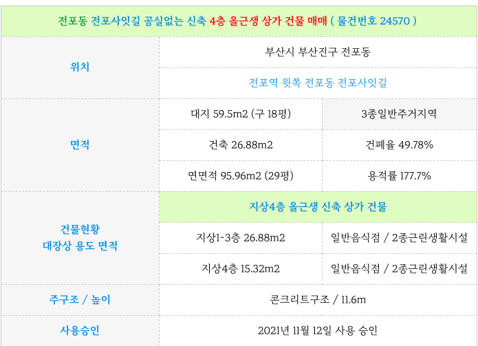 전포동 전포사잇길 공실없는 신축 4층 올근생 상가 건물 매매 물건 정보 정리 드립니다.