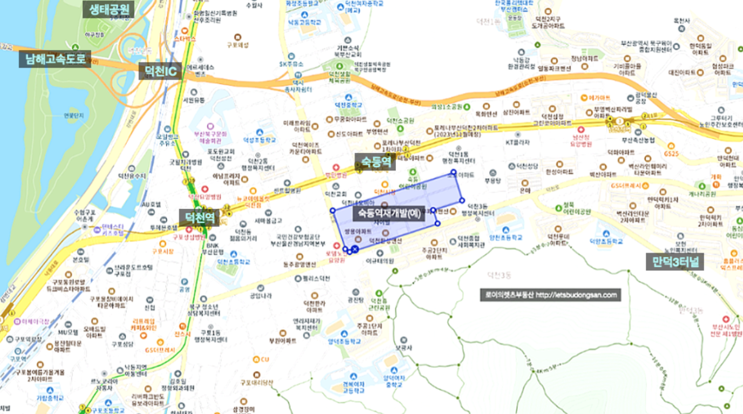 덕천3구역도 함께 하면 숙등역 주변으로 3000여세대 대단지 아파트 타운이 형성되어