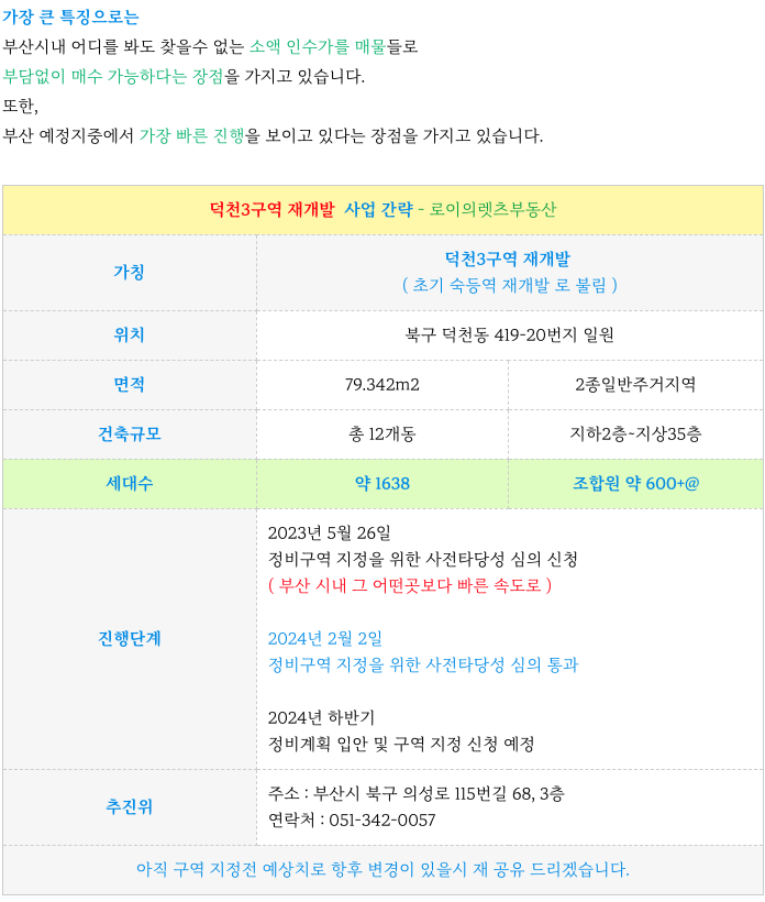 숙등역 역세권 덕천3구역 재개발 예정지에 대해 궁금하신 점은 연락주시면 자세히 설명 드리겠습니다.