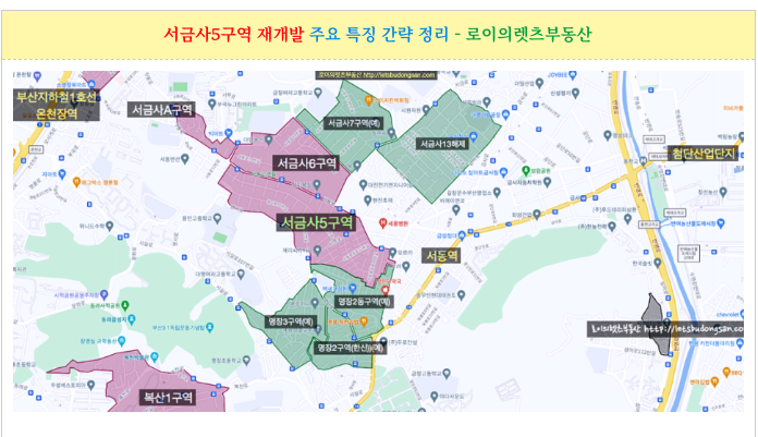 서금사5구역 재개발 주요 입지적 특징을 정리하였습니다.