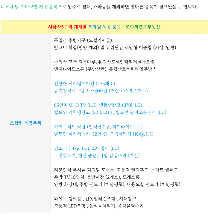 서금사5구역 재개발 조합원 제공 품목입니다.