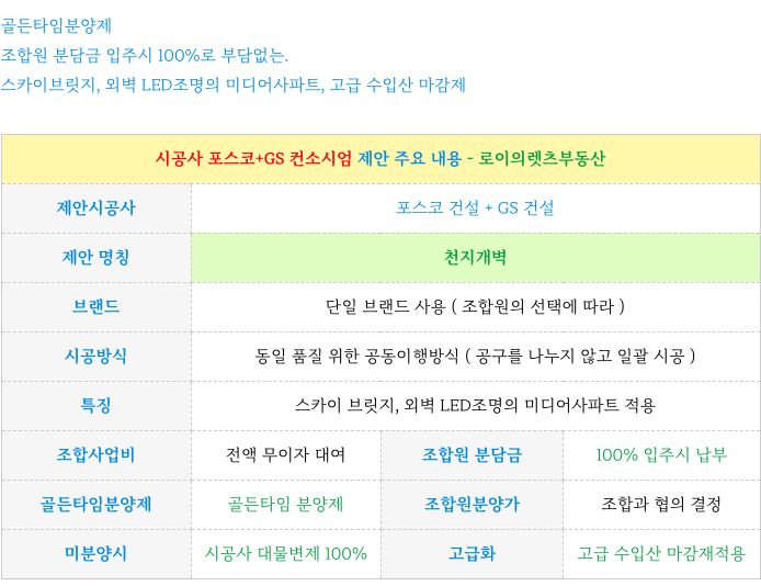 서금사5구역 재개발 시공사 포스코와 GS 컨소시엄의 주요 제안 부분 소개해 드리겠습니다.