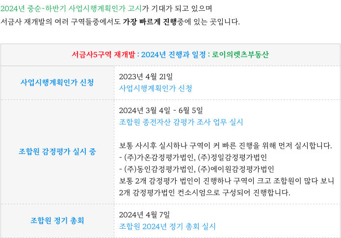 서금사5구역 재개발 구주요 진행 상황 & 향후 예상 일정 정리등 추가 정보는 아래 페이지를 참고 부탁드립니다.