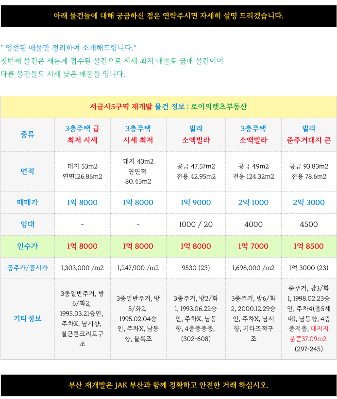 서금사5구역 재개발 새로 접수된 급매 매물 1.8