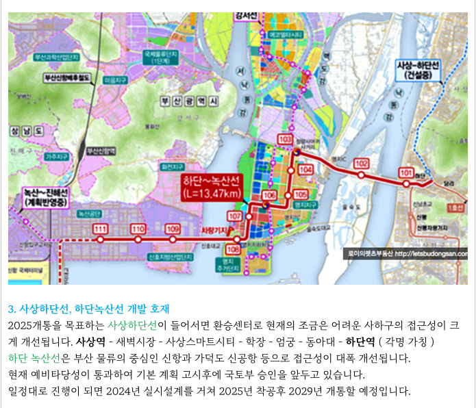 가까운 하단역이 사상하단선과 하단 녹산선이 들어서면 트리플 역세권 환승센터로 변모되고