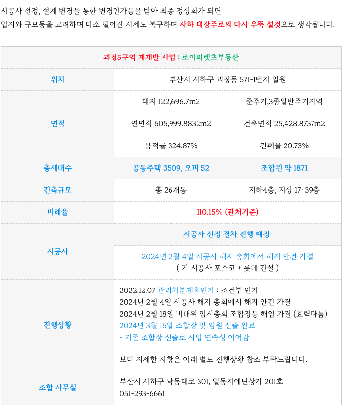 괴정5구역 재개발 급매 84타입 매물 과 진행 소식