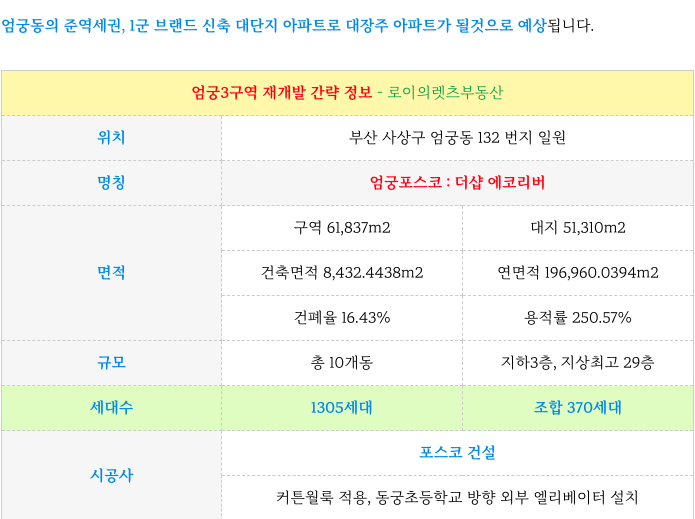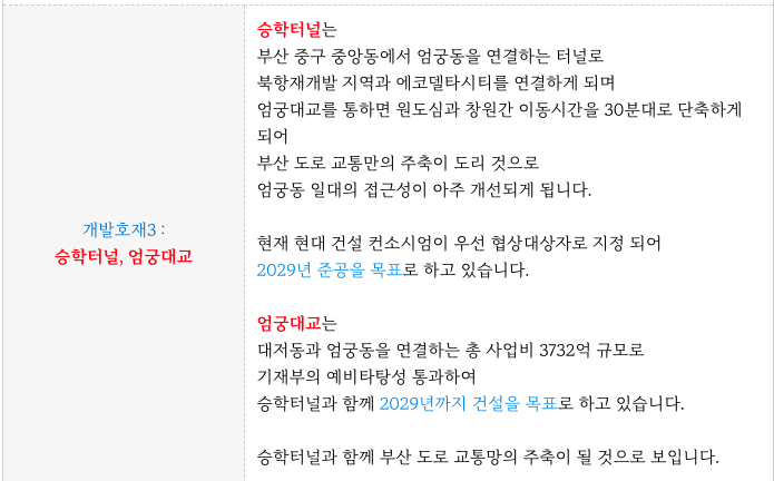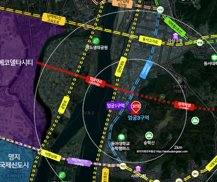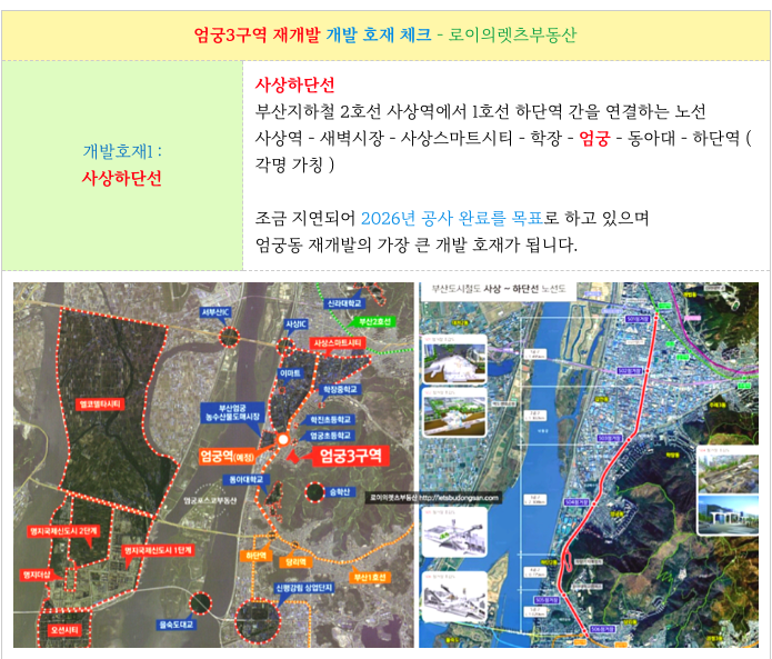 엄궁3구역은 부산 도시철도 사상 하단선의 엄궁역의 개발 호재를 가지고 있습니다.