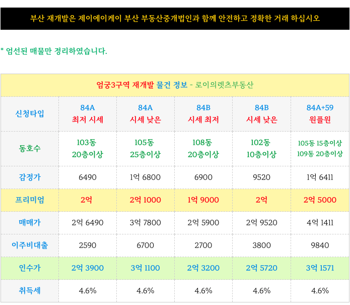 엄궁3구역 재개발 최저 급매 84타입과 원플원 매물 소개해 드립니다.