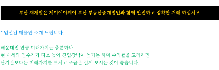 부산 전역 재개발에 대해 궁금하신 점은 방문 또는 연락주시면 자세히 설명드리겠습니다.
