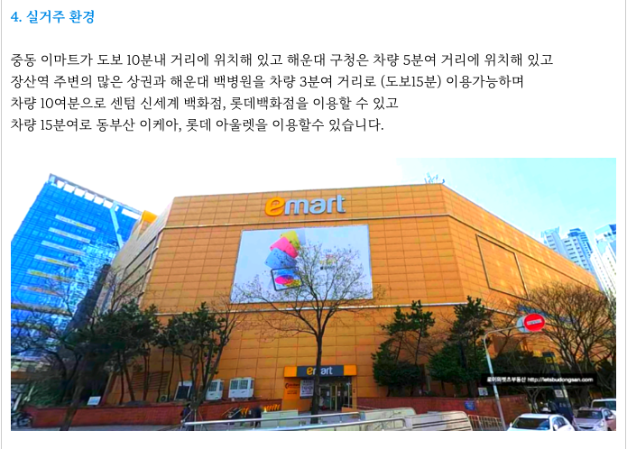 대형 마트인 중동이마트와 해운데 로데오아울렛이 도보 거리에 있어 편리 합니다.