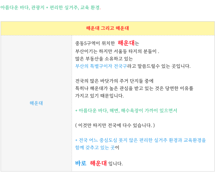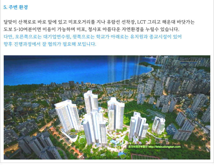 1) 아름다운 해운대 바다 조망 이 기대가 되고 있는 곳으로