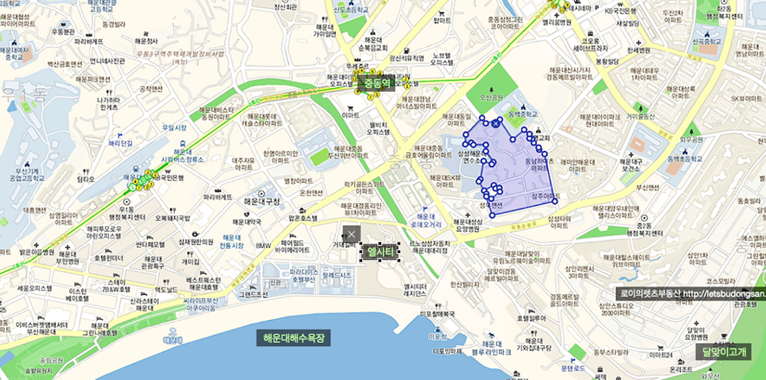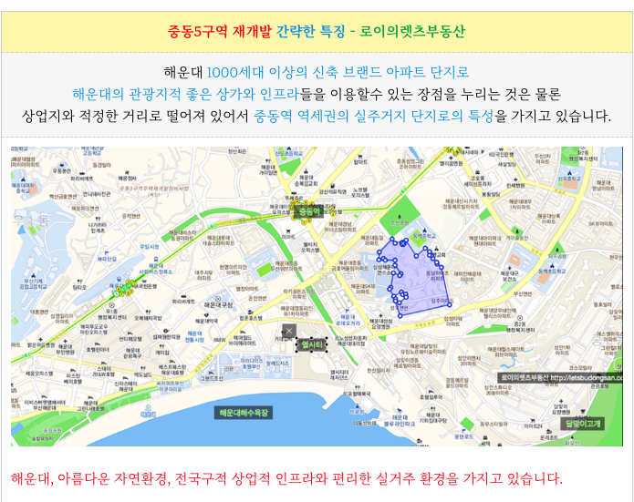 해운대 중동5구역 재개발 입지와 주요 특징을 정리하였습니다.