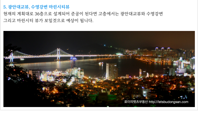 향후 아파트가 들어서면 고층에서 광안대교 조망도 기대가 되고 있는데