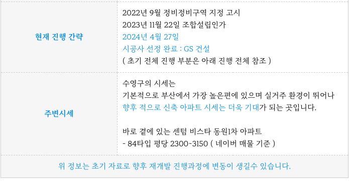 민락2구역 재개발 주요 일정과 향후 진행 부분 정리등 추가 정보는 아래 페이지를 참고 부탁드립니다.