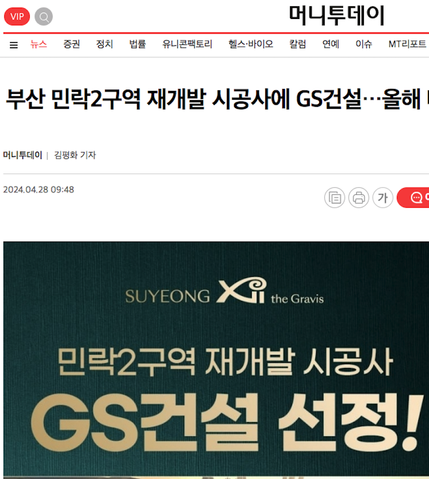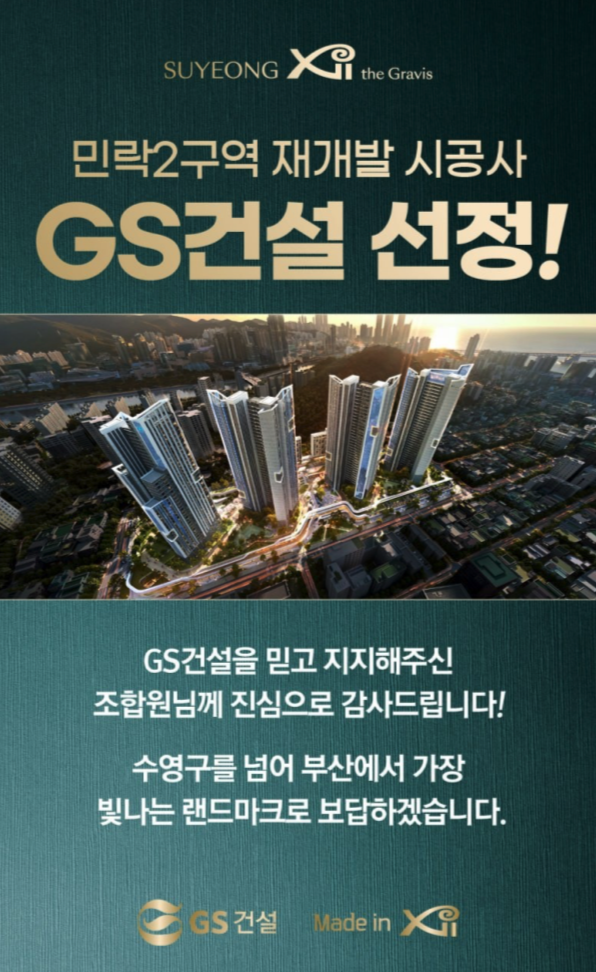 민락2구역 재개발 : 시공사 선정 GS 건설 & 매물