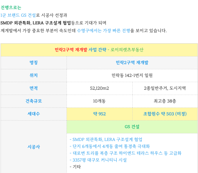 안녕하세요 로이의렛츠부동산 ( JAK 제이에이케이 부산 ) 입니다. 오늘은 민락2구역 시공사 선정 완료 ...