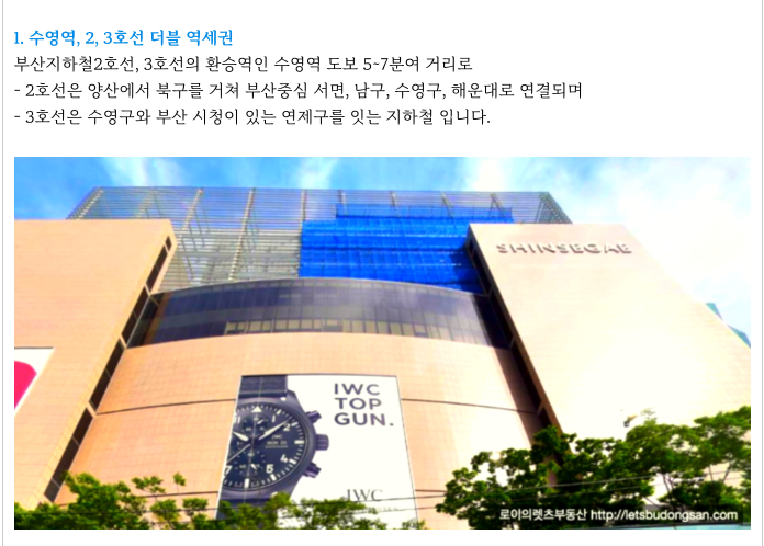 부산지하철 2,3호선 환승센터 수영역 도보 5분여의 준 역세권으로의