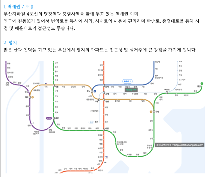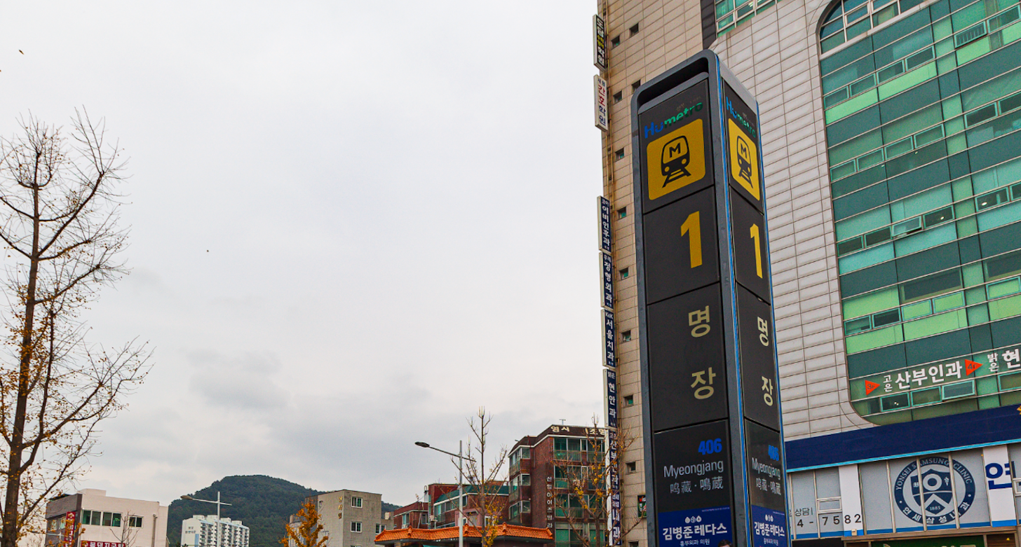부산 지하철 4호선 충렬사역과 명장역 도보 3분여의 역세권이고