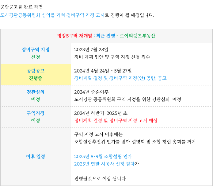 명장5구역 재개발 현재까지의 일자별 주요 진행 부분 및 추가 정보는 아래 페이지를 참고 부탁드립니다.