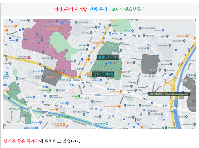 명장5구역 재개발 주변 및 입지적 주요 특징을 소개 드립니다.