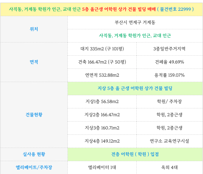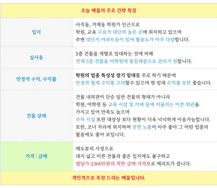 대단지 아파트 인근 5층 올근생 어학원 (학원) 상가 건물 빌딩 매매 물건 소개드립니다.