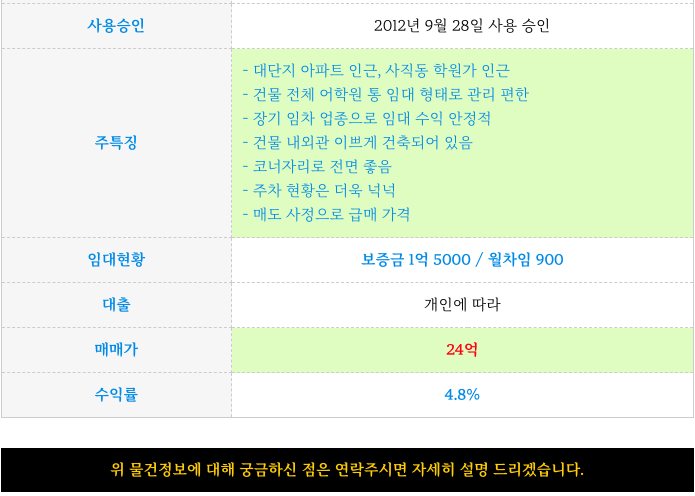 | 부산 만덕 역세권 공실없는 올근생 꼬마 3층 건물 매매 (엘베유) (1) | 2024.04.20 |